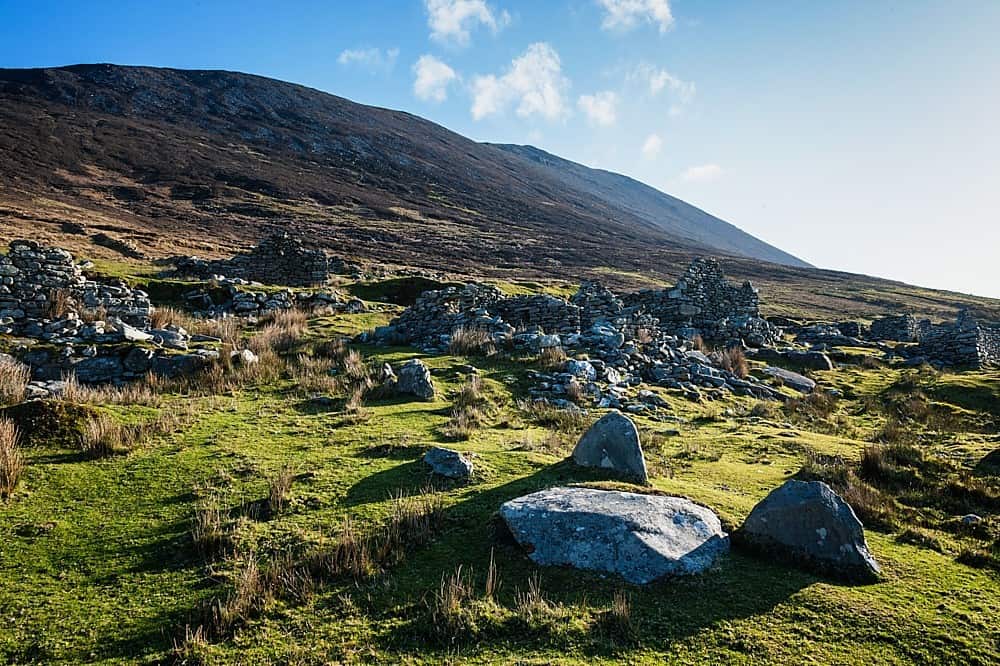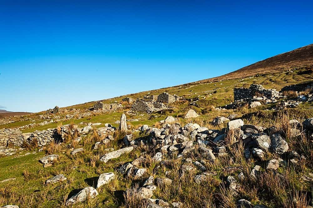 The Deserted Village is located on Achill Island, about 3 km north of Keel in County Mayo.