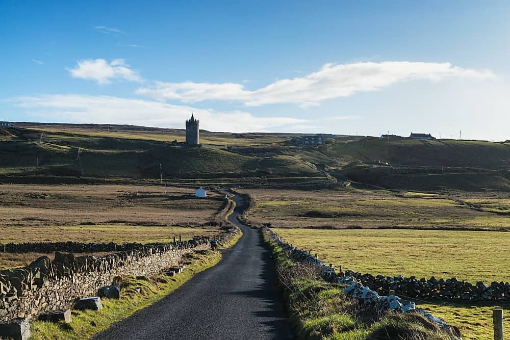 Doonagore Castle is located about 2 km south of Doolin in County Clare.