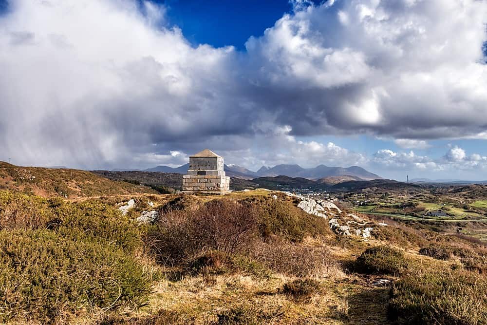 John D’Arcy Monument is located in Connemara, about 1 km west of Clifden. The monument is best reached on foot from Clifden as there is no parking near the hill.