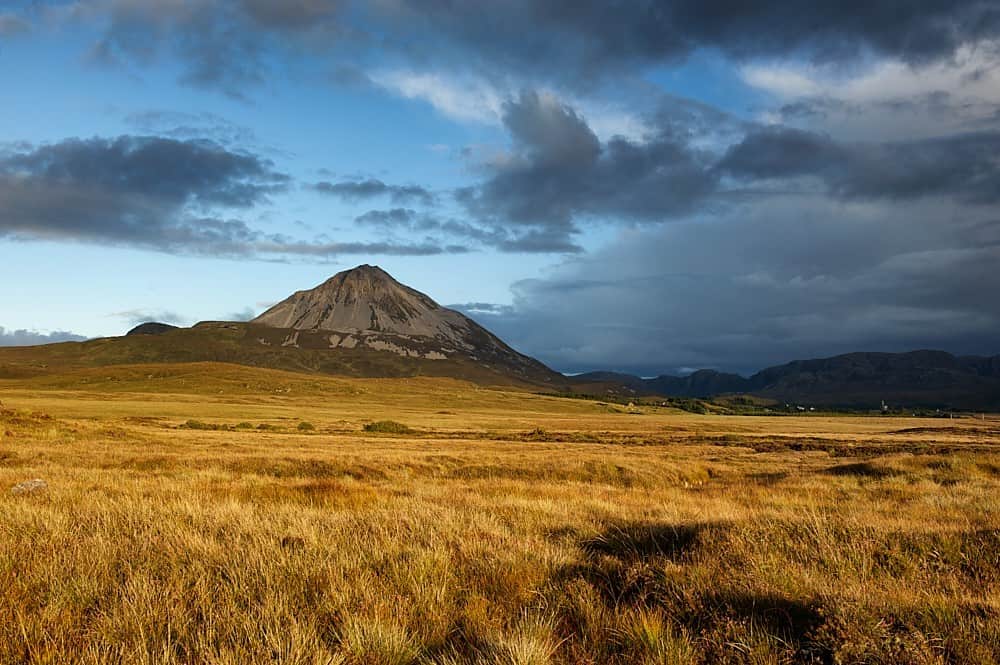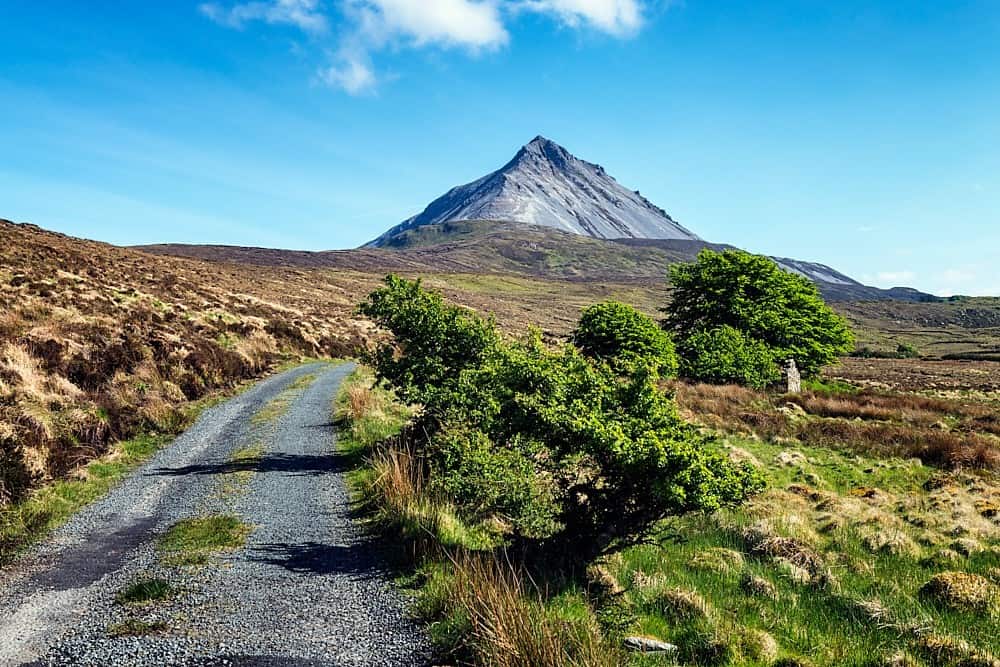 Mount Errigal is located about 13 km east of Bunbeg in County Donegal.